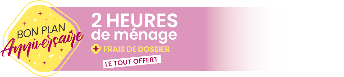 Prenez du temps pour vous avec nos 2 heures de ménage offertes + frais de dossier offerts. Demandez votre devis gratuit !